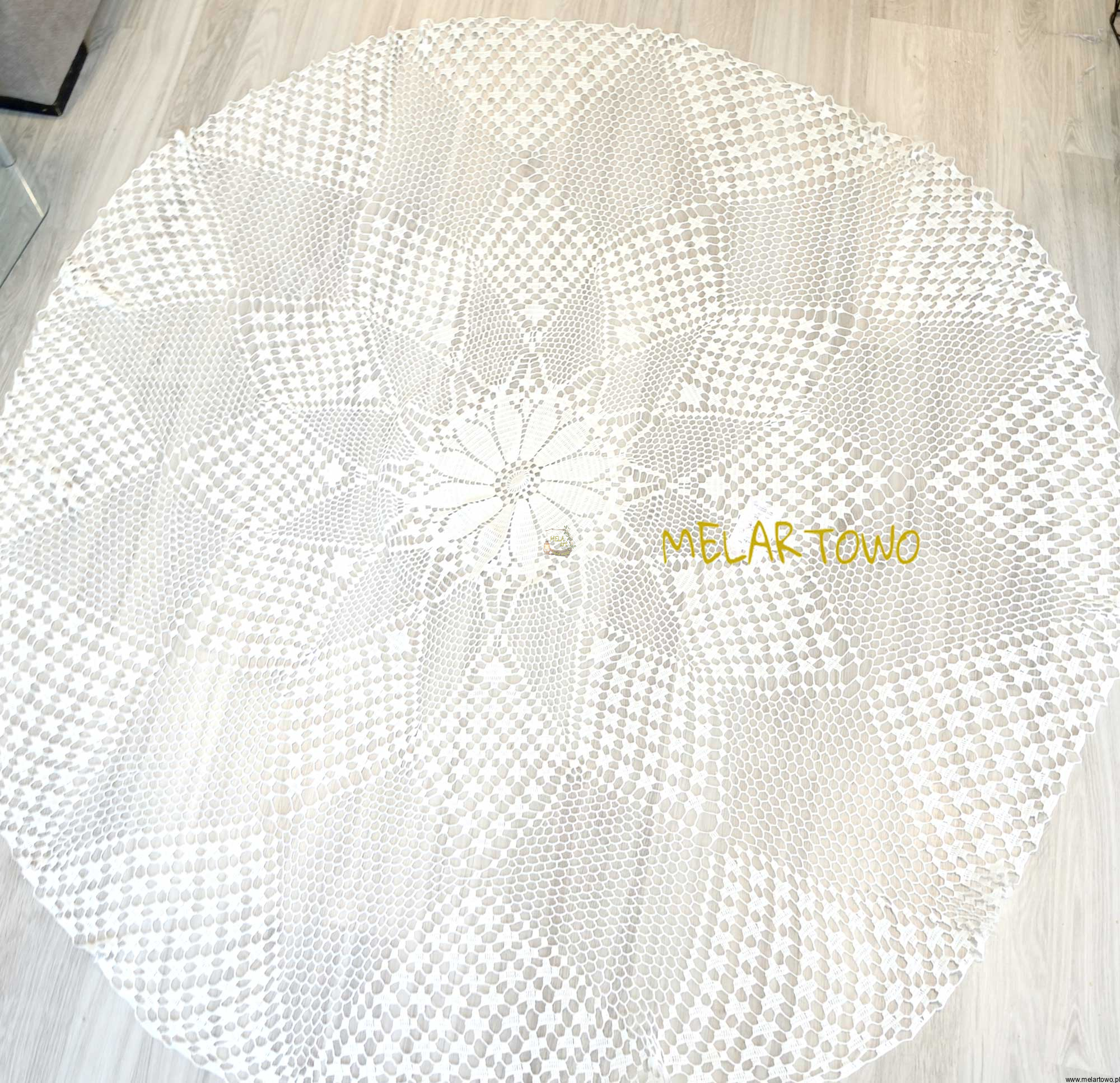 Przepiękny, jak mgiełka delikatny i mocny obrus na okrągły stół.