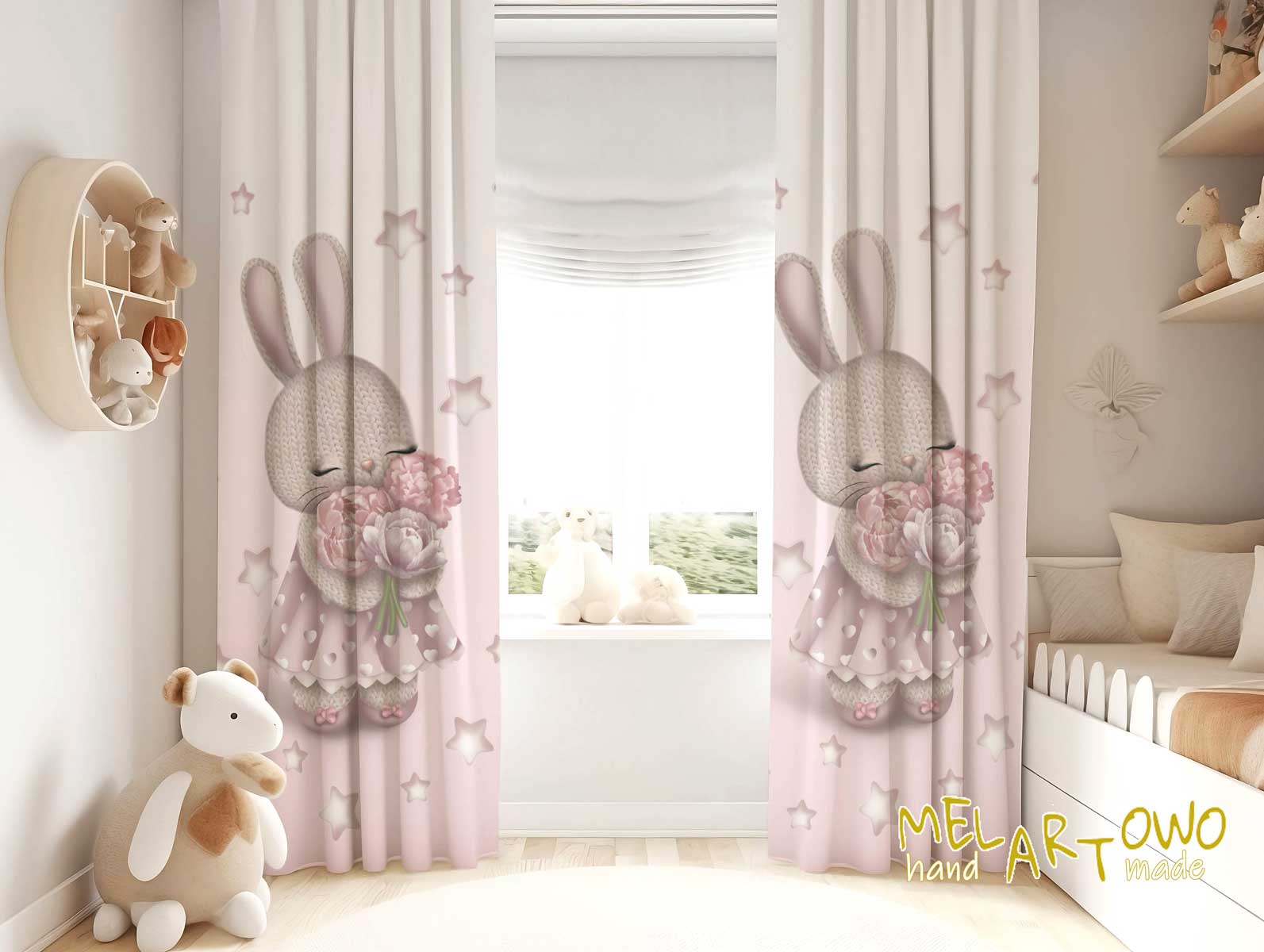 Króliczka z bukietem- zasłona okienna